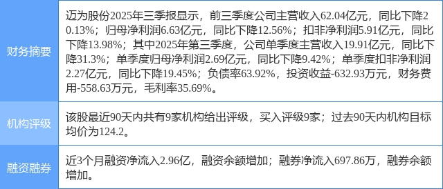 2025年12月29日,华鑫证券研究员张涵发布了对迈为股份的研报《公司动态研究报告:立足技术平台,战略布局光伏与半导体》,该研报对迈为股份给出“买入”评级。研报中预测公司2025-2027年收入分别为89.1、103.0、119.2亿元,EPS分别为2.74、3.45、3.96元,当前股价对应PE分别为63、50、43倍,考虑到公司在HJT的技术优势,与半导体业务的战略布局,给予“买入”投资评级。证券之星数据中心根据近三年发布的研报数据计算,该研报作者对此股的盈利预测准确度为66.25%。