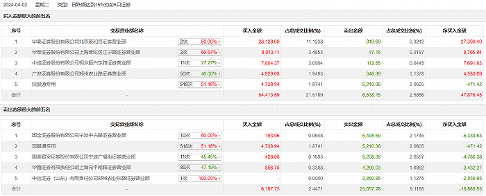 具体来看,知名游资现身龙虎榜,炒股养家(华鑫证券有限责任公司上海宛平南路证券营业部)净卖出3432.27万元。此外,国金证券宁波中兴路证券营业部、深股通专用分别卖出5498.59万元、5210.36万元;华泰证券北京雍和宫证券营业部、华泰证券上海普陀区江宁路证券营业部分别买入2.81亿元、8813.11万元。