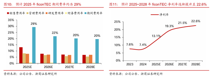 值得一提的是,在罗博特科的公司发展史里,入股并最终收购ficonTEC是具有里程碑意义的事件。通过收购全球高精耦合设备龙头ficonTEC,罗博特科掌握了用于组装与测试硅光器件的专有且难以复制的核心技术及专有技术,并覆盖了整个高精密制造过程并满足数通、电信及其他市场的特定应用需求。据悉,罗博特科收购ficonTEC 事项于今年5月完成,此后ficonTEC 已正式并表。另据浙商证券披露的深度报告,预计ficonTEC在2025年期间费率约为29%,并逐步降至2028年的20%;2025年净利率预计为13.1%,或逐步升至2028年的22.6%。