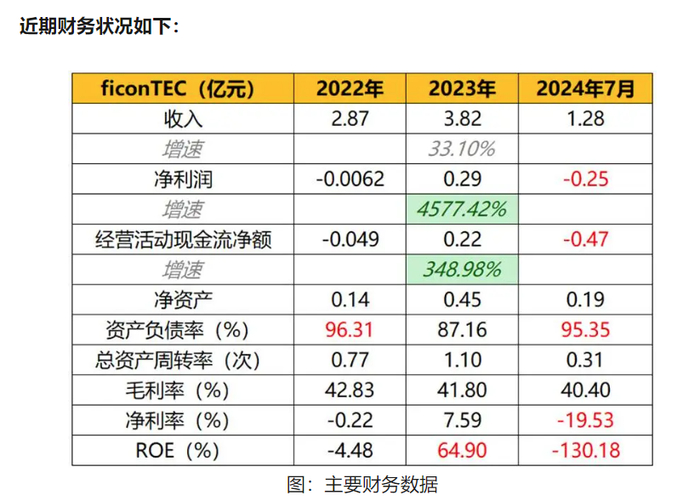 然而,公告的ficonTEC竞争优势,并没有体现在业绩上面。2022年和2023年及2024年1-7月,ficonTEC(指FSG和FAG)营业收入分别为2.87亿元、3.82亿元、1.28亿元,归母净利润分别为-63万元、2900万元、-2481万元。