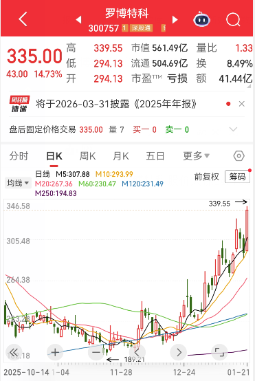 股价涨14.73%,最新收盘价报于335元/股,创下历史新高,同时股价跻身至A股前20位。
