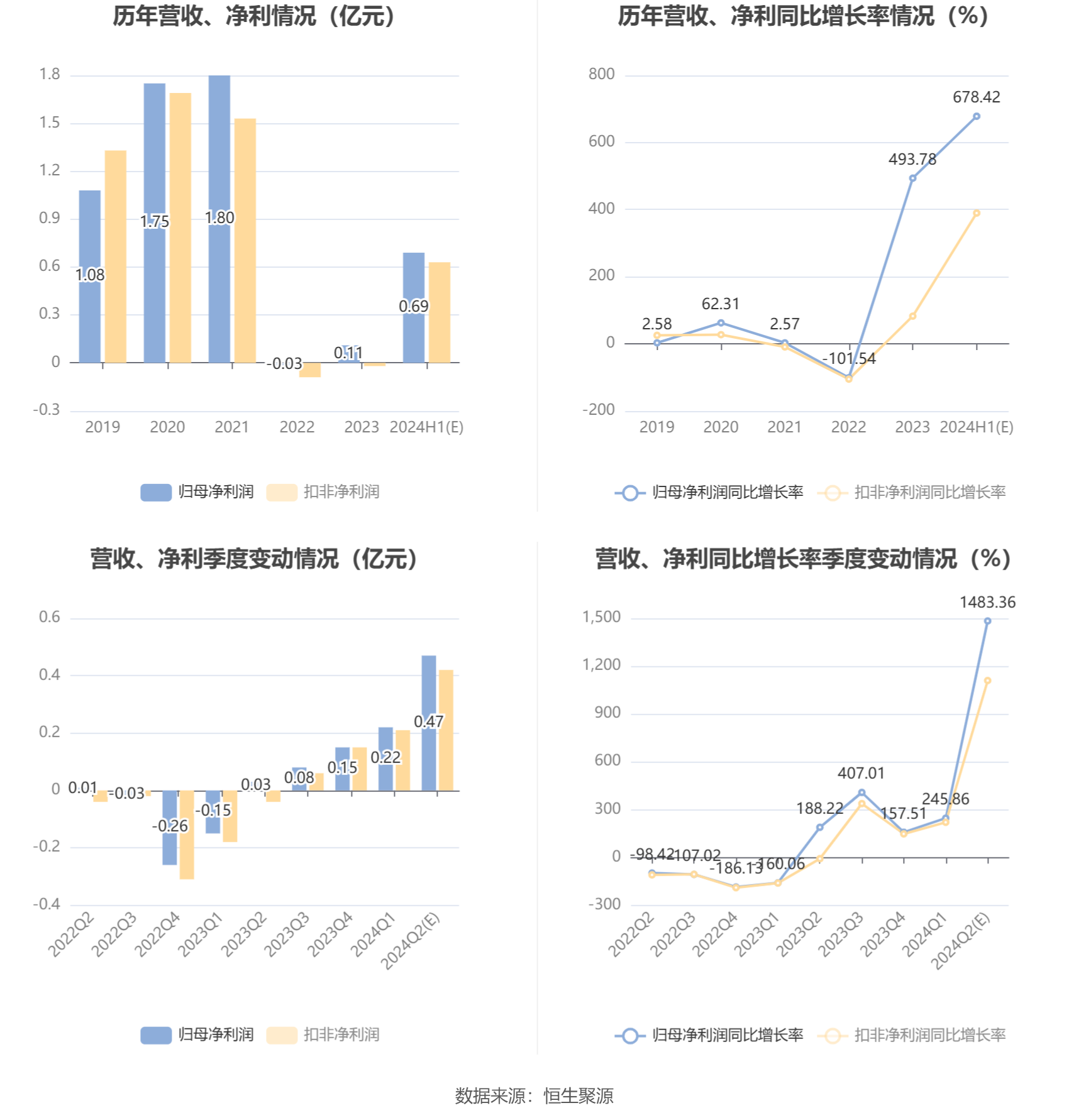 据公告,公司业绩变动原因为,公司在报告期内通过加强市场拓展、把握行业新机遇、灵活调整销售策略,并注重技术创新与产品应用研发等多方面的努力,实现了经营业绩的恢复与增长。高性能有机颜料产品的产销量显著增长,综合毛利率提升。同时,新材料产品的成功落地也进一步提升了公司的整体经营质量。 公司预计2024年半年度非经常性损益约543.34万元,主要由计入当期损益的政府补助及单独进行减值测试的应收款项减值准备转回构成。上年同期金额为990.23万元。