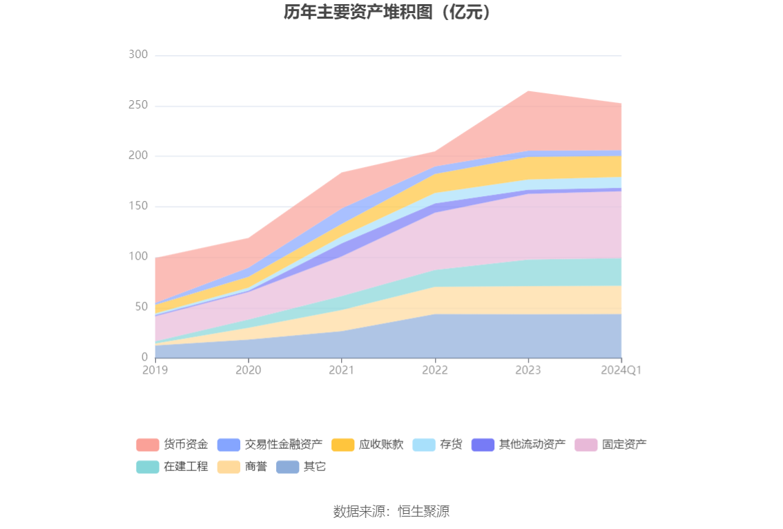资产重大变化方面,截至2024年一季度末,公司货币资金较上年末减少21.72%,占公司总资产比重下降4.01个百分点;固定资产较上年末增加2.00%,占公司总资产比重上升1.71个百分点;在建工程较上年末增加4.14%,占公司总资产比重上升0.92个百分点;商誉较上年末减少0.10%,占公司总资产比重上升0.50个百分点。