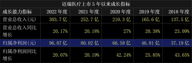 近期A股上市公司陆续披露了2022年年报以及2023年一季报,作为全球领先的医疗器械以及解决方案供应商的迈瑞医疗表现再次亮眼。根据迈瑞医疗2022年报,公司营收303.66亿元增长20.17%;净利润96.07亿元增长20.07%。同时,2023年一季报显示,公司营收83.64亿元增长20.47%,净利润25.71亿元增长22.14%。