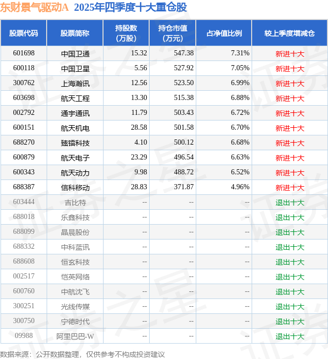根据2025基金年报公募基金重仓股数据,重仓该股的公募基金共1家,其中持有数量最多的公募基金为东财基金的东财景气驱动A。东财景气驱动A目前规模为0.19亿元,最新净值1.9482(1月13日),较上一交易日下跌0.57%,近一年上涨77.19%。该公募基金现任基金经理为方一航。