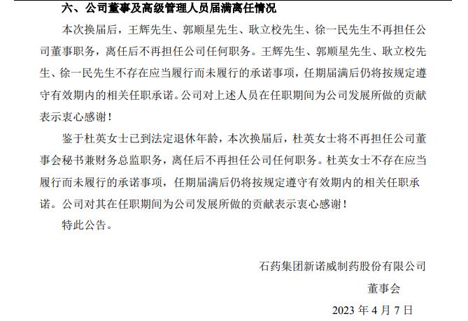 在3天后(4月7日),新诺威发布了关于董事会、监事会完成换届选举及聘任高级管理人员、审计部门负责人和证券事务代表的公告,称本次换届后,王辉不再担任公司董事职务,离任后不再担任公司任何职务。