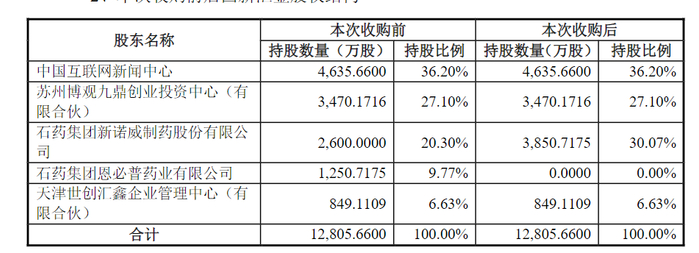 交易完成后,国新汇金与新诺威、石药集团再无股权关联,石药控股则升至国新汇金第二大股东。
