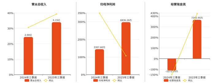 公司营业总收入为4.15亿元。归母净利润为6836.26万元。经营活动现金净流入为7342.90万元。
