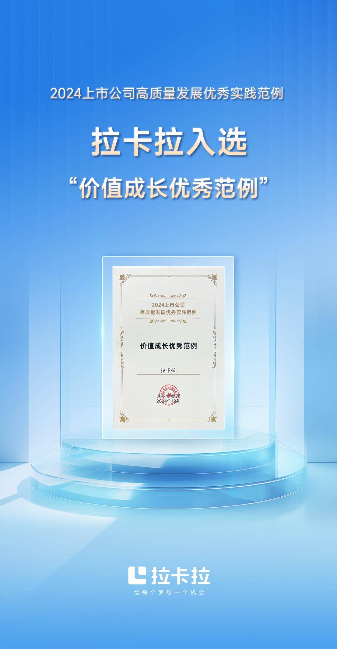 拉卡拉入选2024上市公司价值成长优秀范例