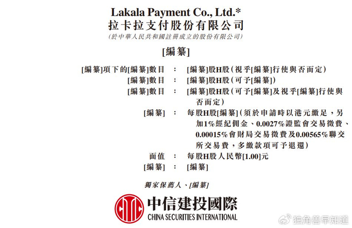 据港交所近日披露,拉卡拉支付股份有限公司(300773.SZ)向港交所主板提交上市申请书,中信建投国际为独家保荐人,中信里昂证券有限公司、招银国际融资有限公司为整体协调人。