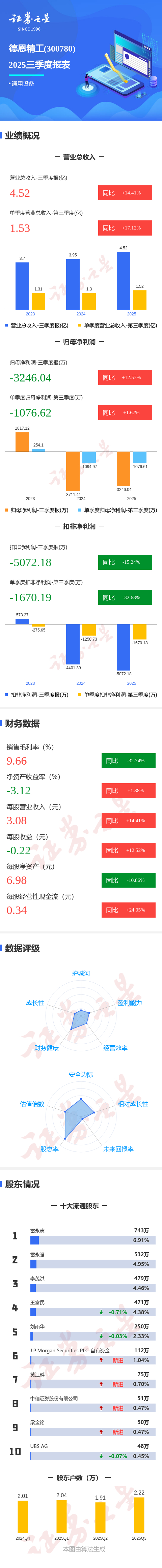 图解德恩精工三季报:第三季度单季净利润同比增长1.68%