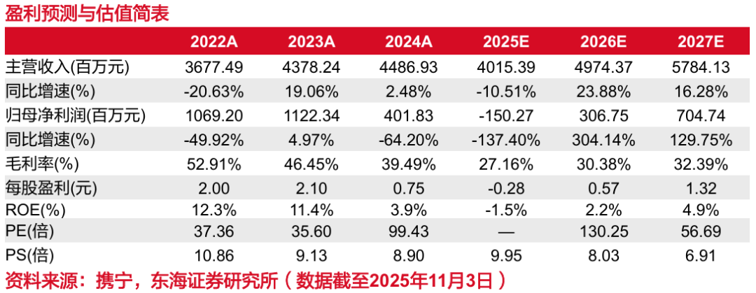 事件概述:根据公司2025年第三季度业绩公告,2025年前三季度公司实现营业收入27.69亿元(yoy-17.77%),实现归母净利润-1.71亿元(yoy-140.13%),实现扣非归母净利润-2.05亿元(yoy-149.54%),综合毛利率26.68%(yoy-13.84pcts)。2025Q3,公司实现营业收入10.65亿元(yoy-1.62%,qoq+12.36%),实现归母净利润-0.23亿元(yoy-132.84%,qoq+76.84%),实现扣非归母净利润-0.54亿元(yoy-189.21%,qoq+44.44%),综合毛利率23.37%(yoy-13.77pcts,qoq-3.58pcts)。
