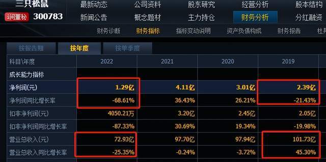 净利润下滑69%!三只松鼠交上市后业绩最差年报,市值跌没280亿