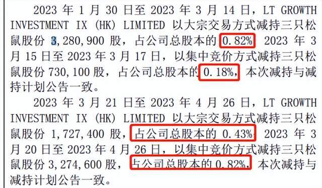 4月27日,三只松鼠发布股东减持达到 1%的公告,涉及股东LT GROWTH INVESTMENT IX (HK) LIMITED(隶属于今日资本,以下简称“今日资本”)。