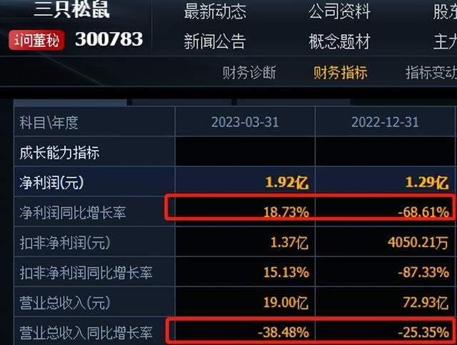 4月25日,三只松鼠披露2022年报,公司营收净利润双降,其中净利润下滑69%。2023年一季度,三只松鼠营收下滑38%,净利润增长19%。业绩数据的变动来看,三只松鼠一季度净利润确实有增长,而且是在营收下滑近四成的情况下,颇为难得。