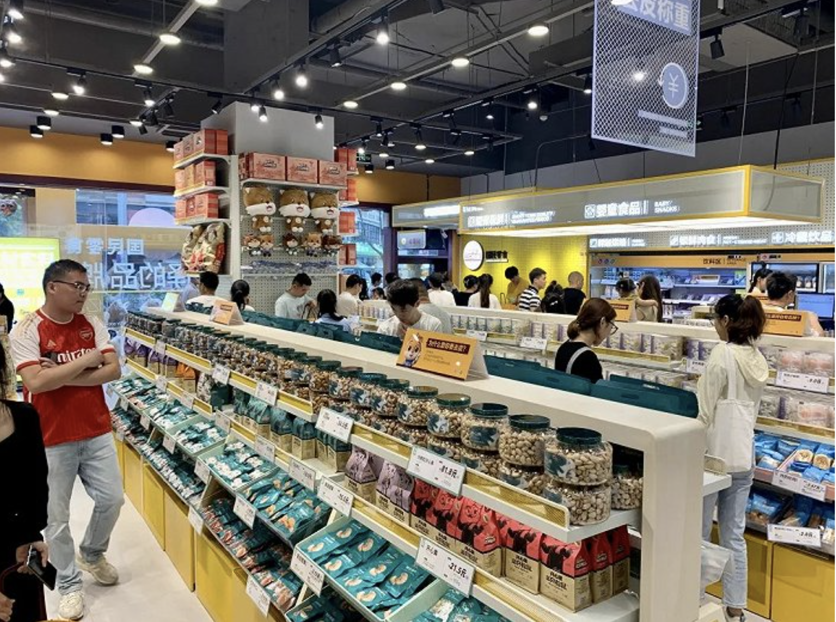 区别于此前的线下门店,社区零食店主要强调极致性价比,多推出三只松鼠的自有品牌,例如散装食品结算采用了去皮称重的方式。