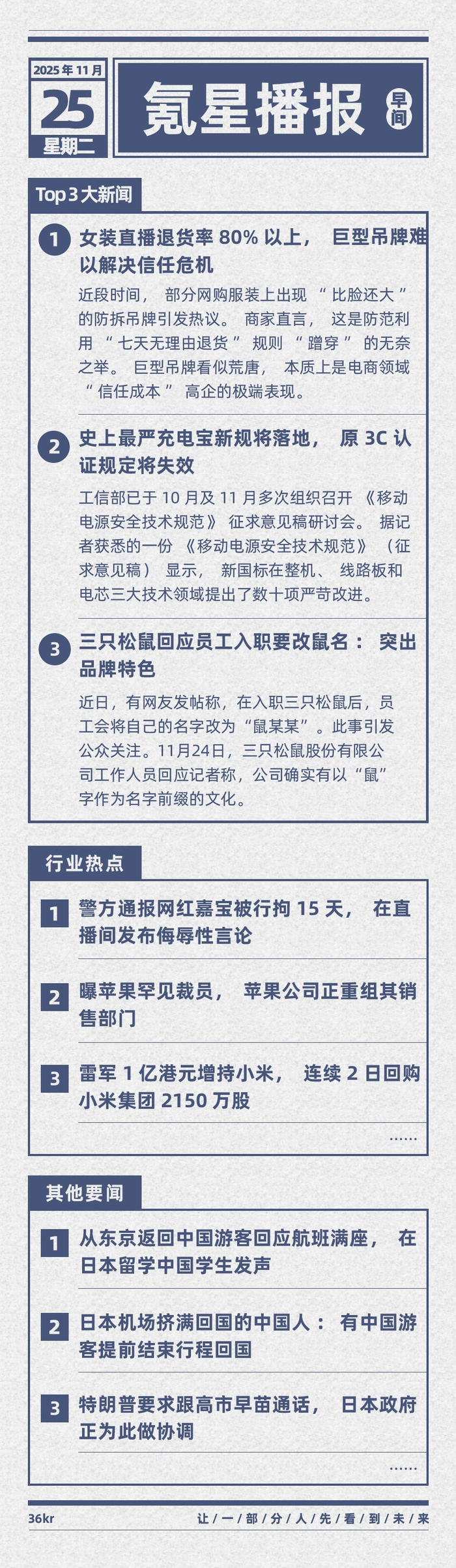 【#氪星播报#|11月25日早间都有哪些#今日大事件#?】