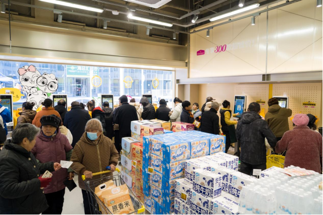 开业现场,挤满了前来尝鲜的市民,生鲜区人头攒动,现卤蜜汁烤鸡销售一空,原香米被争相抢购,“东西多、品类全、更新鲜,这里的商品既实惠又实用。”不少前来光顾的市民在挑选时纷纷感叹。