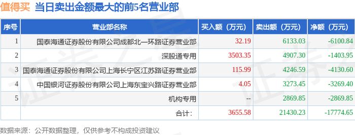 从龙虎榜公布的当日买卖数据来看,机构合计净买入3457.69万元,北向资金合计净卖出1403.95万元。章盟主等知名游资榜上有名。(知名游资章盟主一般指国泰海通证券股份有限公司上海长宁区江苏路证券营业部席位,根据市场资料整理,仅供参考)