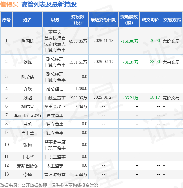 值得买近半年内的董监高及核心技术人员增减持详情如下: