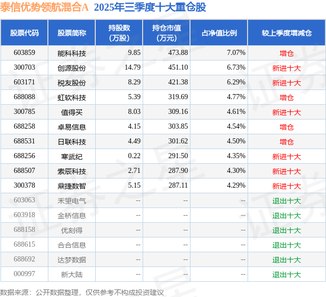 根据2025基金Q3季报公募基金重仓股数据,重仓该股的公募基金共2家,其中持有数量最多的公募基金为泰信基金的泰信优势领航混合A。泰信优势领航混合A目前规模为0.18亿元,最新净值1.0352(12月30日),较上一交易日上涨1.0%,近一年上涨12.68%。该公募基金现任基金经理为吴秉韬。吴秉韬在任的基金产品包括:泰信国策驱动灵活配置混合,管理时间为2019年7月25日至今,期间收益率为206.71%;泰信低碳经济混合发起式A,管理时间为2021年11月3日至今,期间收益率为9.44%;