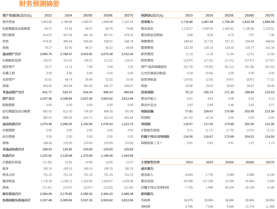 盈利预测与投资建议
