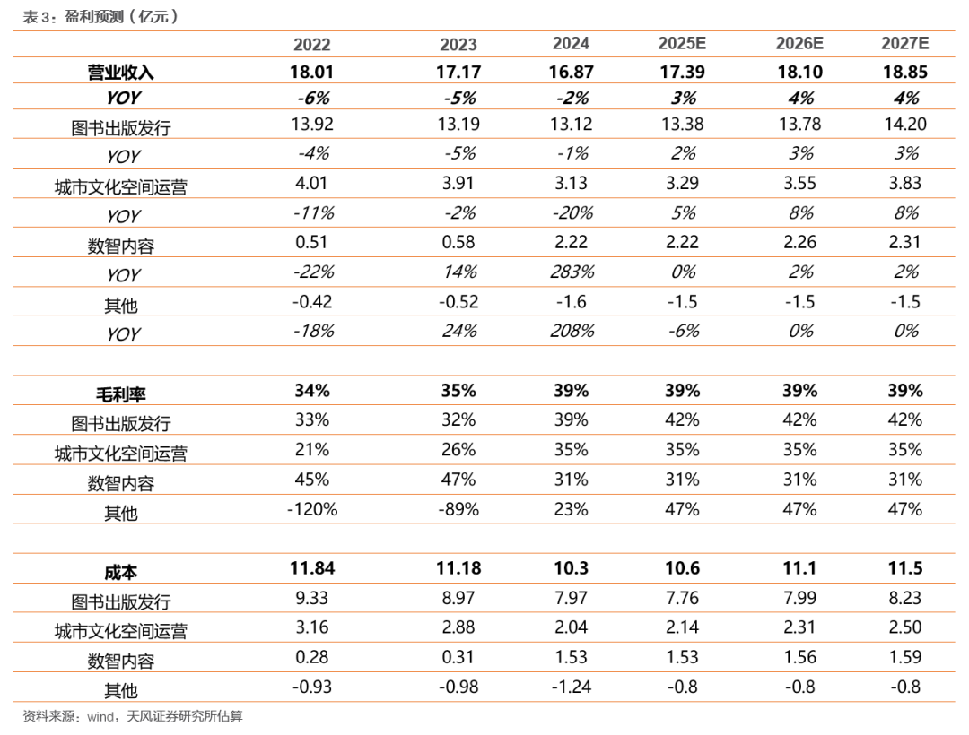 成本端:1)图书出版发行:预计动漫图书占比提升带动毛利率小幅上行;2)城市文化空间运营:预计毛利率相对稳定;3)数智内容:预计毛利率相对稳定。