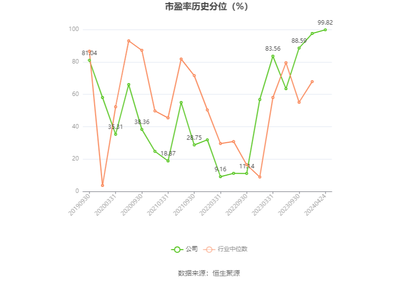 市盈率为负时,不显示当期分位数,会导致折线图中断。
