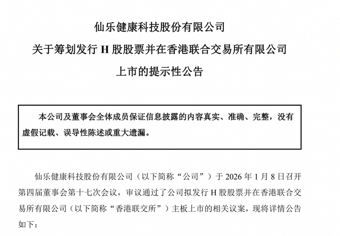 瑞财经 刘治颖 1月11日,仙乐健康(SZ300791)公告,为深化公司全球化战略布局,利用国际资本市场优势,打造多元化资本运作平台,进一步提高公司资本实力和综合竞争力,以加快海外业务发展,完善境内外双循环格局,巩固行业地位,公司拟发行境外上市外资股(H股)股票并申请在香港联交所主板挂牌上市。