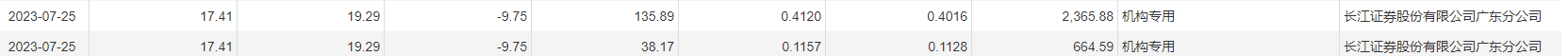 今日大宗交易成交400万股,成交额6964万元,占当日总成交额的21.92%,成交价17.41元,较市场收盘价折价9.75%。