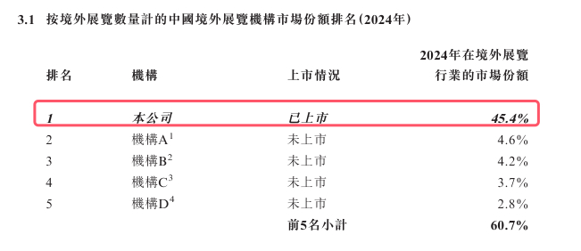 米奥会展是一家成熟的展览服务提供商。根据弗若斯特沙利文的资料,按2024年举办的境外自办展览数量及面积计,公司在所有中国的境外展览机构中名列第一。