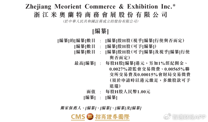 智通财经APP获悉,据港交所12月24日披露,浙江米奥兰特商务会展股份有限公司(简称:米奥会展)向港交所主板递交上市申请书,招商证券国际为其独家保荐人。
