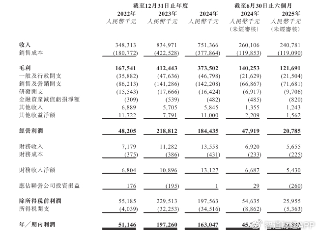 2022年度、2023年度、2024年度及2025年截至6月30日止六个月,该公司年内/期内利润分别约为5114.6万元、1.97亿元、1.63亿元、2059.2万元人民币。