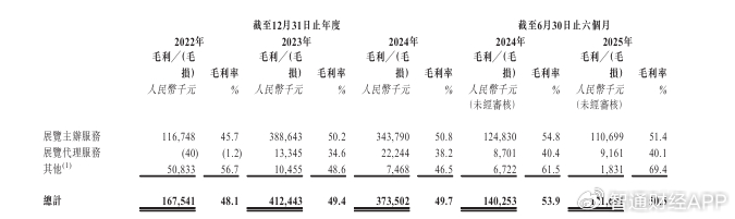 2022年度、2023年度、2024年度及2025年截至6月30日止六个月,该公司毛利率分别为48.1%、49.4%、49.7%及50.5%。