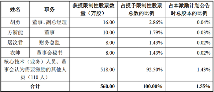 本次授予对象包括114名激励对象,具体情况如下所示: