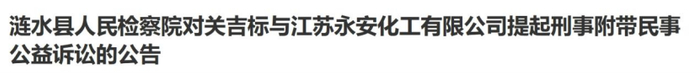 同时,上述法律公告还在征集有关社会组织向关吉标与江苏永安化工有限公司提起民事公益诉讼(和启动生态环境损害赔偿程序)。