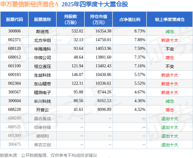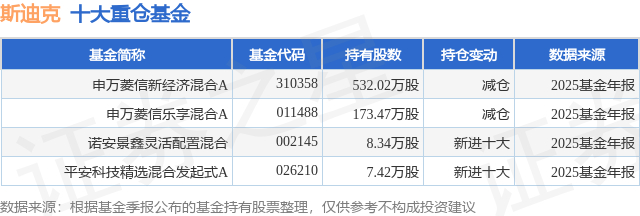 根据2025基金年报公募基金重仓股数据,重仓该股的公募基金共4家,其中持有数量最多的公募基金为申万菱信基金的申万菱信新经济混合A。申万菱信新经济混合A目前规模为11.96亿元,最新净值1.5532(1月23日),较上一交易日上涨0.4%,近一年上涨75.46%。该公募基金现任基金经理为付娟。付娟在任的基金产品包括:申万菱信乐享混合A,管理时间为2021年3月24日至今,期间收益率为63.72%;申万菱信乐同混合A,管理时间为2021年9月6日至今,期间收益率为-0.06%;申万菱信乐融一年持有混合A,管理时间为2022年6月17日至今,期间收益率为32.65%。