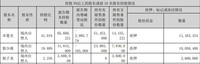 公司2022年年报显示,境内自然人郭子龙为公司第3大股东,报告期末持股360.00万股,持股比例2.25%,全部为质押状态。