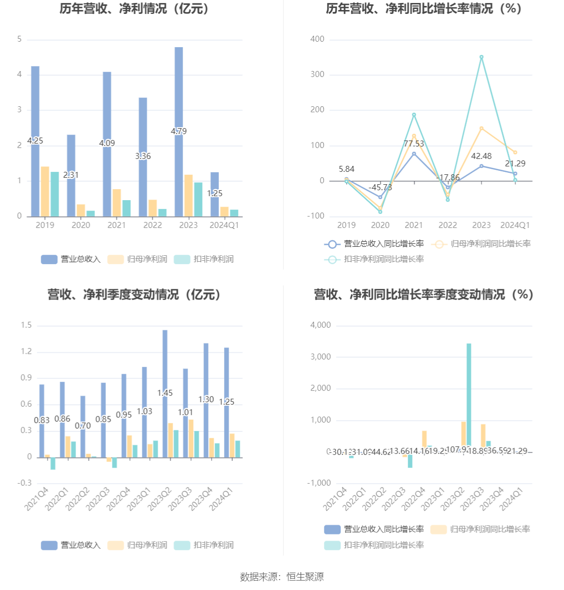 2024年第一季度,公司毛利率为31.77%,同比下降0.97个百分点;净利率为22.36%,较上年同期上升6.49个百分点。