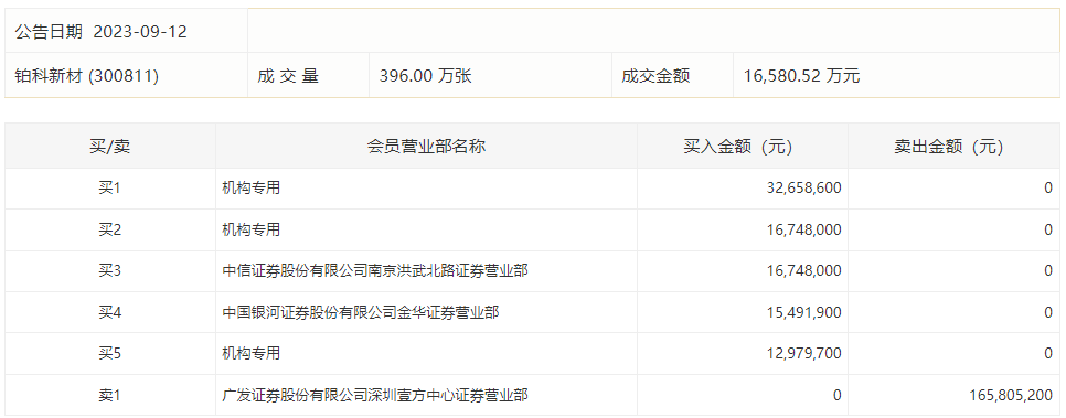 铂科新材今日大宗交易折价成交396万股,成交额1.66亿元