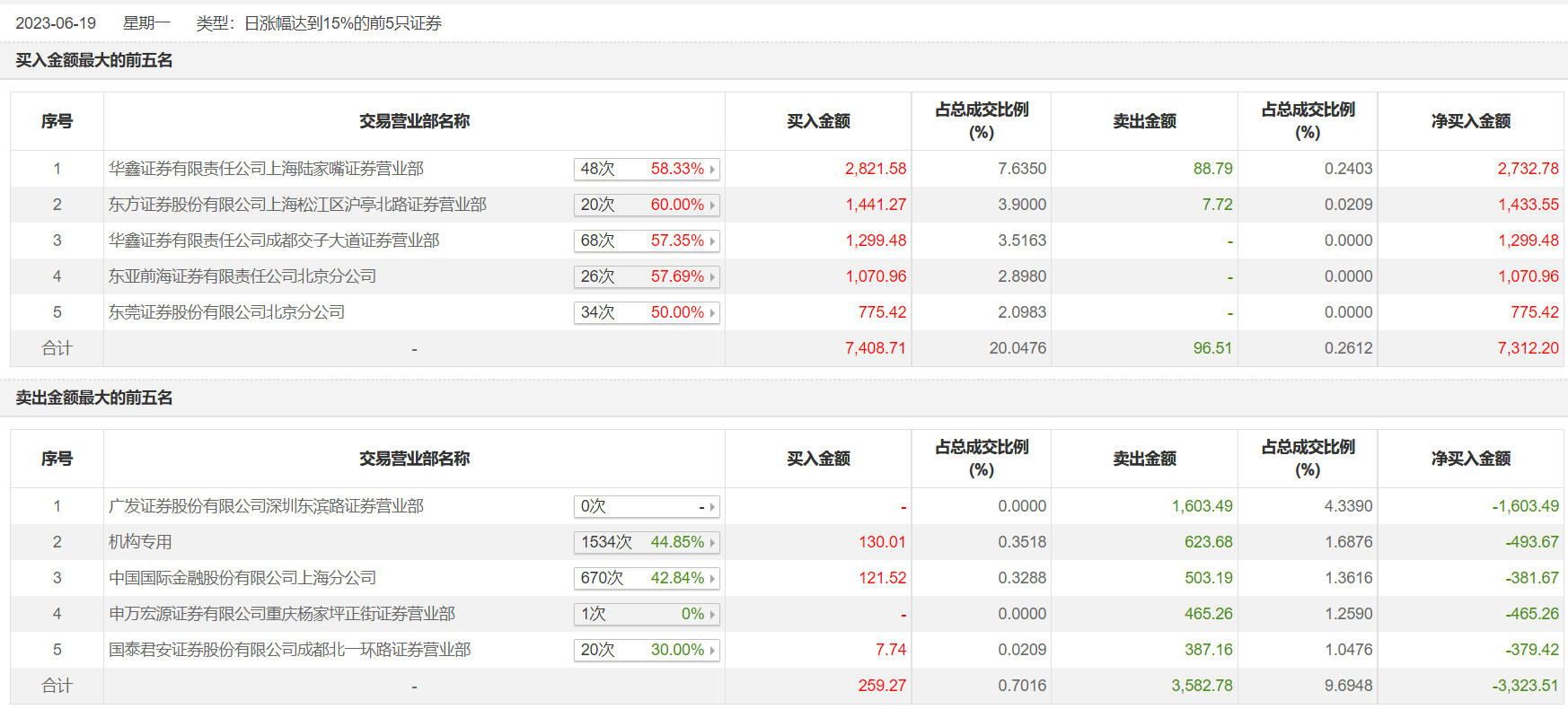 易天股份今日涨停,龙虎榜数据显示,上榜营业部席位全天成交1.13亿元,占当日总成交金额比例为30.7%。其中,买入金额为7667.98万元,卖出金额为3679.29万元,合计净买入3988.69万元。