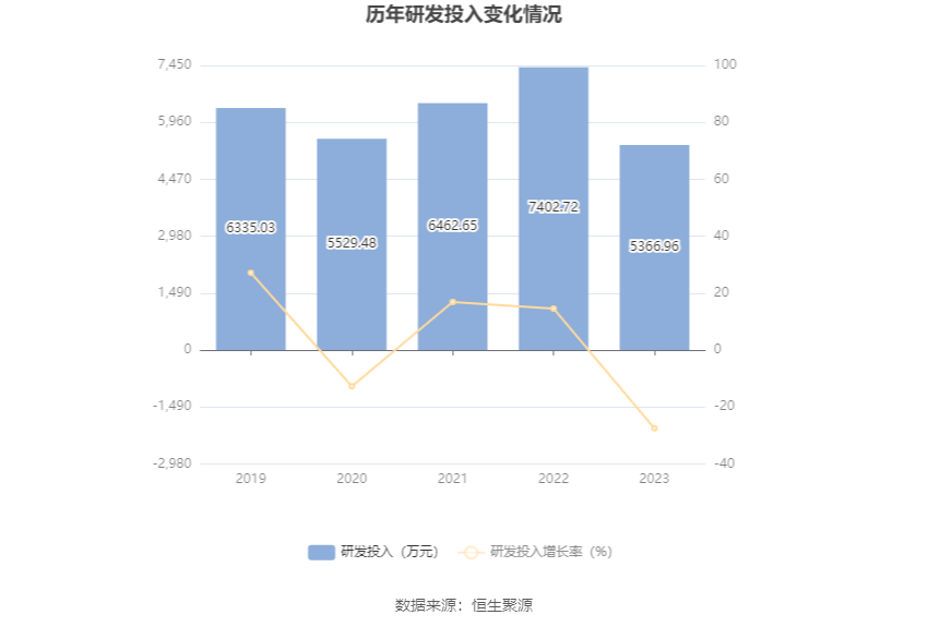 2023年全年,公司研发投入金额为5366.96万元,同比下降27.50%;研发投入占营业收入比例为4.32%,相比上年同期下降0.50个百分点。此外,公司全年研发投入资本化率为0。