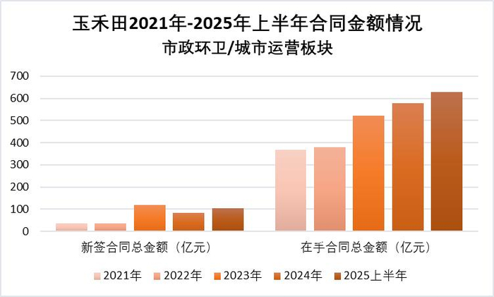 2023年至2025年上半年,城市运营板块新签合同总额分别约118.32亿元、83.40亿元、103.67亿元,在手合同总金额分别为523亿元、577.2亿元、629.11亿元。