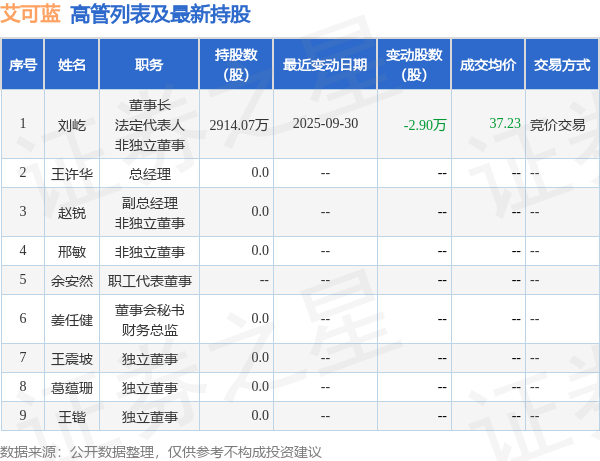 艾可蓝:10月10日高管刘屹减持股份合计21.88万股