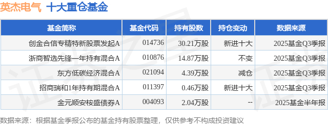 重仓英杰电气的公募基金请见下表: