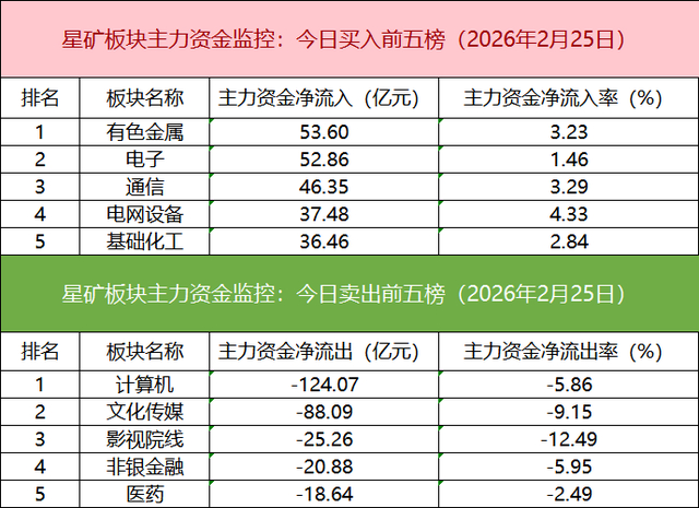 板块资金流出方面,计算机板块主力资金净流出居首。