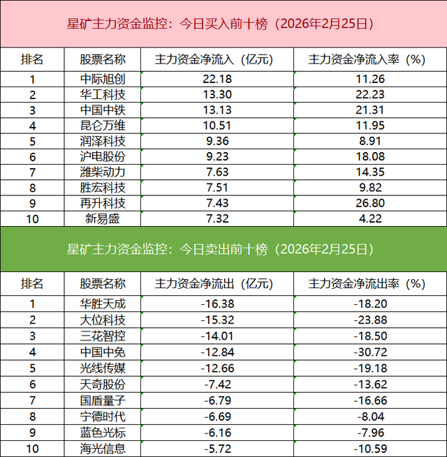 主力资金流出前十的个股所属板块较为分散,华胜天成净流出居首。