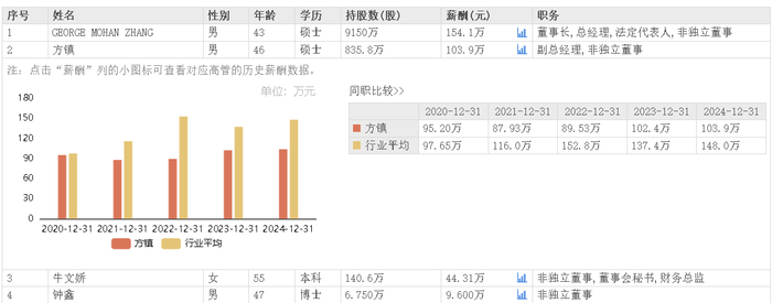 据东方财富网数据,北鼎股份副总方镇2024年所获薪酬为103.9万元,相较上年薪酬102.4万元微涨。