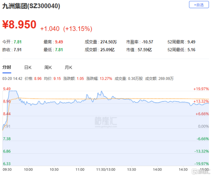 中山东路:净买入九洲集团6080万,净卖出美利云5871万