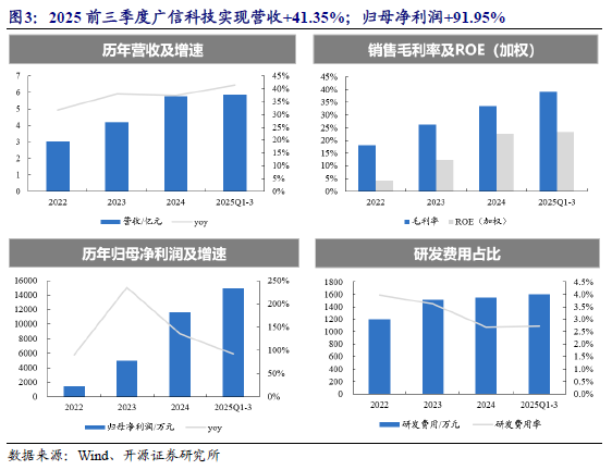 2025前三季度广信科技实现营收5.86亿元,同比增长41.35%;归母净利润1.50亿元,同比增长91.95%。